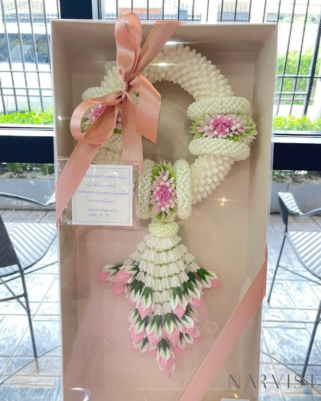 แจกันดอกไม้สด พวงมาลัยดอกไม้สด พวงมาลัยดอกไม้ประดิษฐ์ ชาววัง พวงมาลัยผ้า พร้อมการ์ด Customized ที่สวยที่สุด