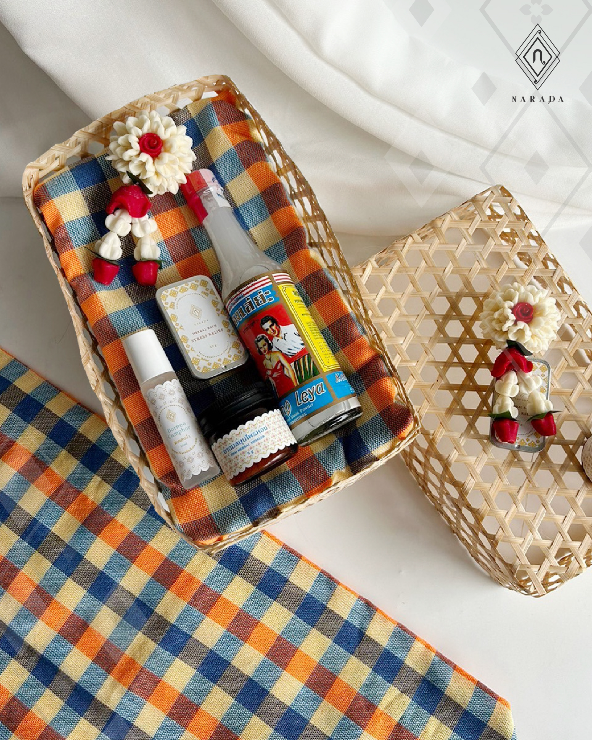 ผสมผสานพวงมาลัยเข้ากับของขวัญมงคล เช่น ชุดชาไทย น้ำผึ้ง กระเช้าของฝาก