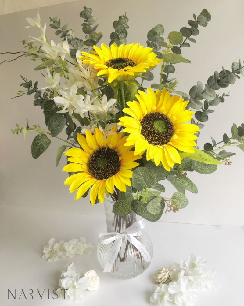 แจกันดอกไม้ประดิษฐ์ดอกทานตะวันสีเหลืองสดใส เหมาะกับการตั้งไว้บนโต๊ะทำงานที่จะเติมพลังความสดใสให้กับเราได้ในทุกวัน และยังเหมาะกับการมอบให้เป็นของขวัญสุดพิเศษให้กับคนรัก เพื่อนสนิทอีกด้วย